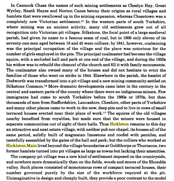 Hickleton Main was a colliery and the cottages were provided for its workers: