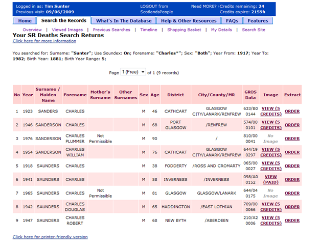 The Scottish People website allows a “Soundex” search – i.e. a search for names that sound like Sunter as well as the Sunter name itself.